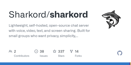 moonpiedumplings@programming.dev to Selfhosted@lemmy.worldEnglish · 1 hour agoGitHub - spacebarchat/spacebarchat: 📬 Spacebar is a free open source selfhostable discord compatible communication platformplus-squaregithub.comexternal-linkmessage-square13fedilinkarrow-up162arrow-down11