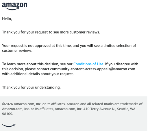 arrow-up1616arrow-down1imageAmazon started hiding ratings for some productsplus-squarediscuss.tchncs.delichtmetzger@discuss.tchncs.de to Mildly Infuriating@lemmy.worldEnglish · 1 day agomessage-square66fedilink