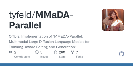 arrow-up17arrow-down1external-linkMMaDA-Parallel: Official Implementation of "MMaDA-Parallel: Multimodal Large Diffusion Language Models for Thinking-Aware Editing and Generation"plus-squaregithub.comikt@aussie.zoneEnglish · 1 month agomessage-square0fedilink