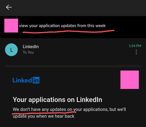 I mean would you rather not get an email and worry that they forgot or there was a glitch? This small update is just updating you that there’s no responses. I imagine they also spend a decent amount of resources when people call and they just tell you what would have been in this email.