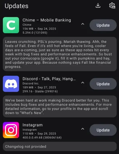 So, they can’t write a real change log. What can they write? “Dependabot updated leftpad from 1.1.3.2 to 1.1.3.3” “untested: updated Gradle from 8.14.2 to 8.14.3” “200mb update to change a comma in the Hungarian translation”