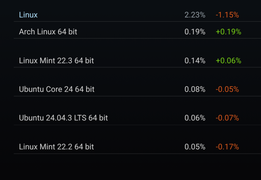 They also had to correct their results last month for some reason. I think they are just having issues with their surveys rn. Also there were multiple 30+ minute steam network outages in Europe in the past few days. Europe is definitely the majority of linux steam users so that might be related.