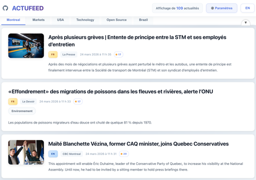 I built ActuFeed because I wanted a simple, distraction-free way to follow exactly the news sources I care about — without algorithms, ads, or tracking.