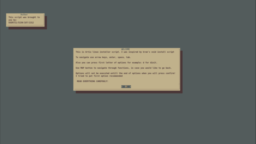 Thanks, its inspired by krum’s void installer script, also very fun project. I think his code is cleaner, theres link: https://github.com/kkrruumm/void-install-script